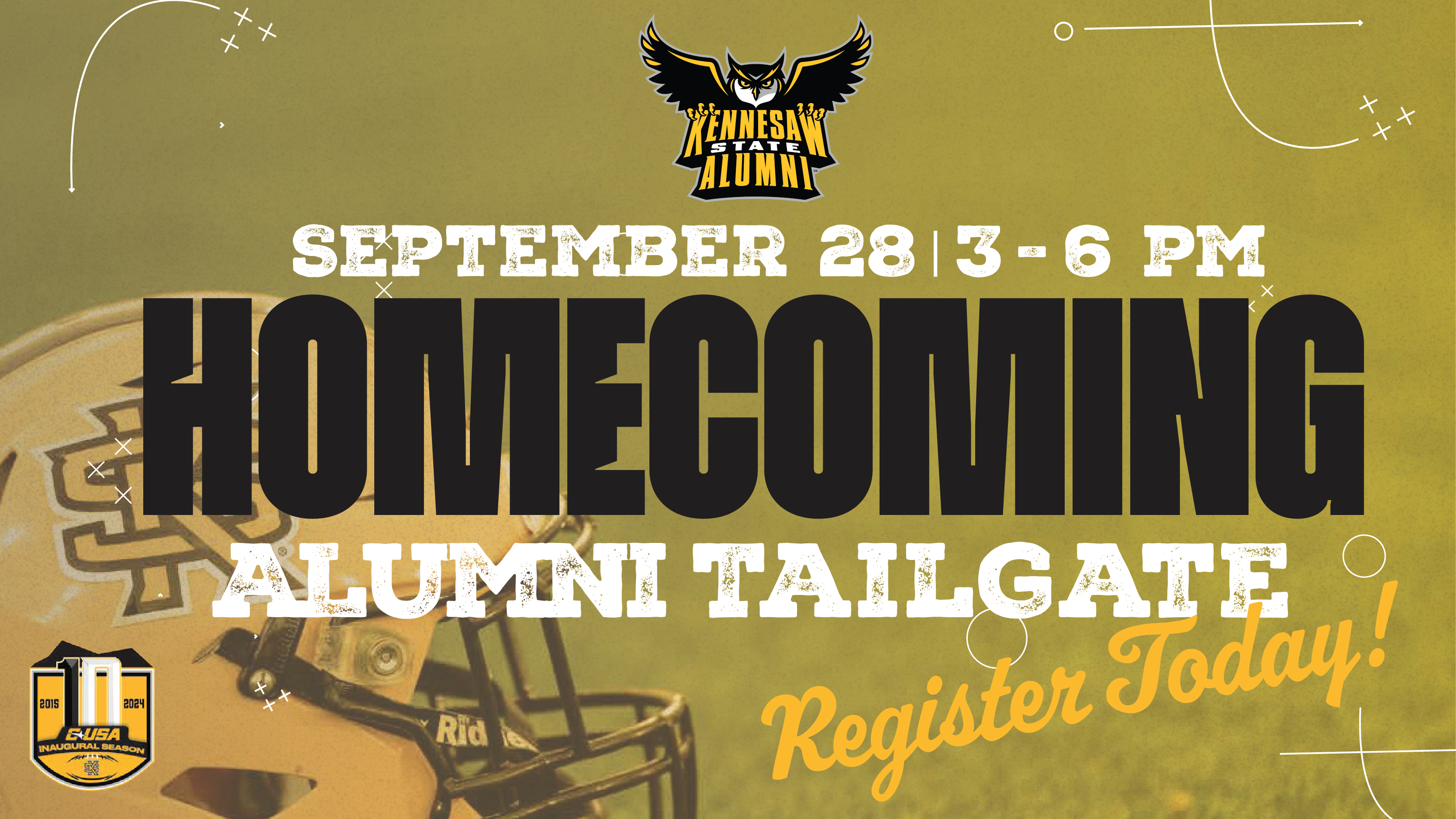 Register here for the KSU Homecoming tailgate and game! This event is hosted by the KSU Alumni Association, but open to all friends of the University.